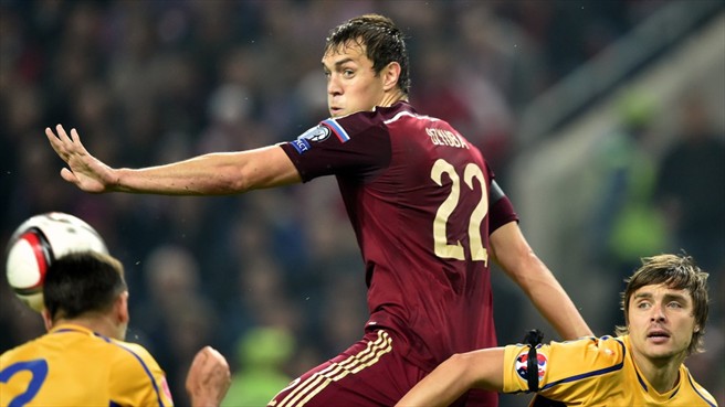 Россия: Акинфеев, Паршивлюк, Игнашевич, В. Березуцкий, Гранат, Глушаков, Дзагоев, Черышев, Ионов, Кержаков, Дзюба.