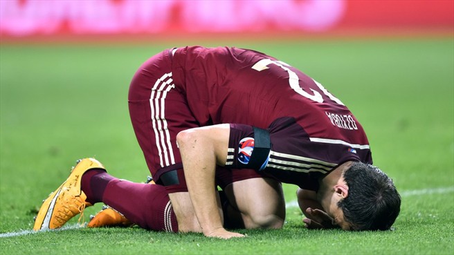 Очередная атака сборной России принесла угловой. Дзагоев подал от флажка, защитники выиграли воздух, на подборе был Игнашевич, но не сумел он слету пробить. Подобрал мяч Черышев, но его передача снова не вышла точной.