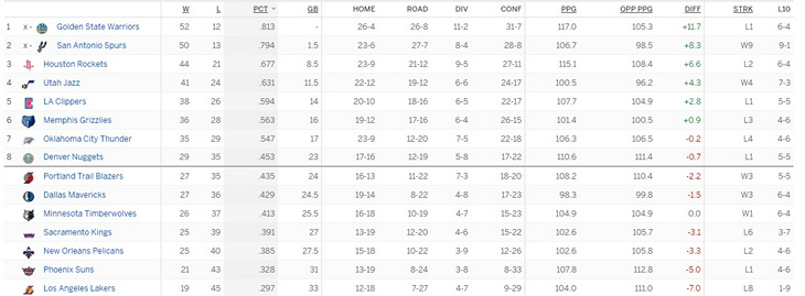 «Голден Стэйт» остался на вершине турнирной таблицы, но имеет всего на одно поражение меньше, чем «Сан-Антонио».