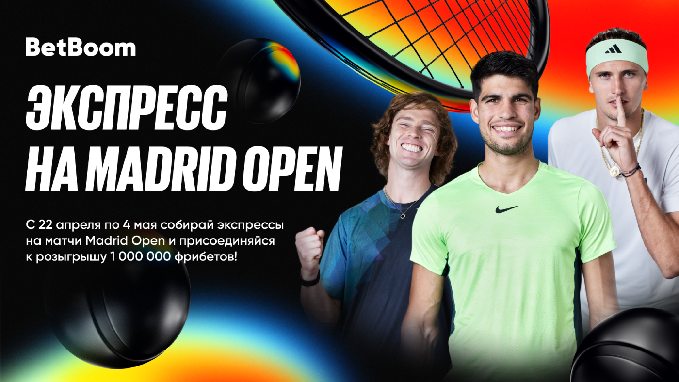 Букмекерская компания BetBoom помогает всем любителям тенниса не только бесплатно смотреть поединки Madrid Open в лучшем качестве, но и дарит миллион фрибетов своим клиентам за ставки на этот турнир.