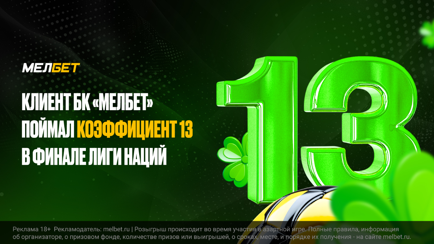 Клиент букмекерской компании «Мелбет» предсказал точный счет в финальном матче Лиги наций между сборными Испании и Португалии. Беттор решился заключить пари на 100 000 рублей с коэффициентом 13, взяв: «Точный счет: 2:2».