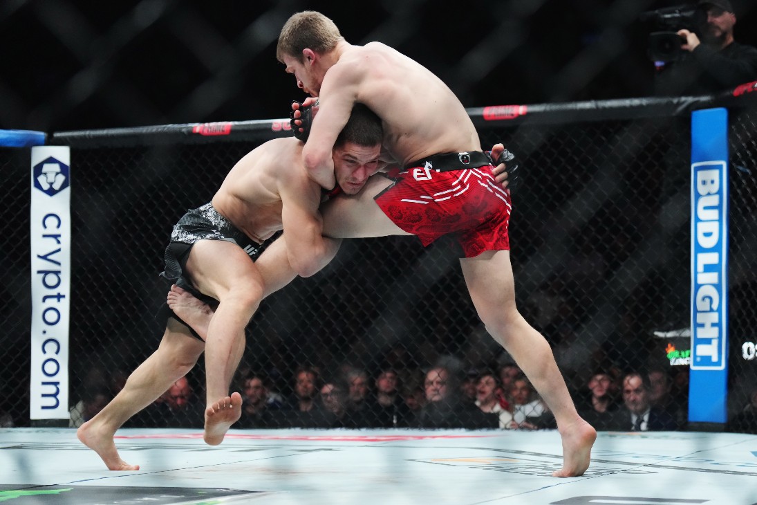 Поединок Мовсара Евлоева и Арнольда Аллена в полулегком весе открывал основной кард турнира UFC 297. С самого начала встречи англичанин завладел инициативой, работая первым номером.