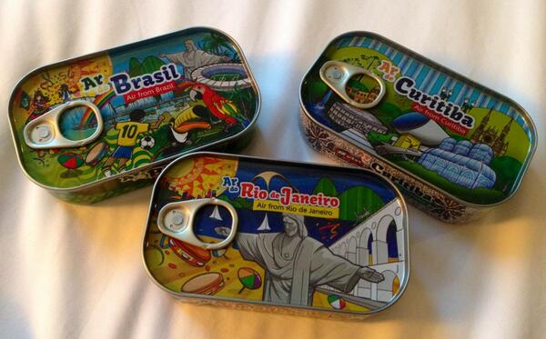 Предприимчивые хозяева ЧМ наладили продажу воздуха своей прекрасной страны в жестяных банках. Выбор весьма богат — начиная от Куритибы и заканчивая Рио.