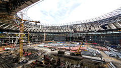 Первый ярус балок, которые будут поддерживать трибуны стадиона, выполнен на 60%. По окончании монтажа балок начнется процесс сбора трибун.