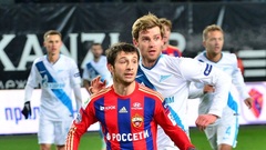 Подопечные Леонида Слуцкого немного активнее начали встречу и вышли вперед уже на 9-й минуте. Понтус Вернблум с левого фланга выполнил навес в центр штрафной площади, Никлас Ломбертс грудью пытался скинуть мяч назад Юрию Лодыгину, но поймал голкипера на противоходе – мяч влетел в сетку.На 22-й минуте красно-синие удвоили свое преимущество. Алан Дзагоев классно забросил мяч на левый край штрафной площади на Щенникова, Георгий в касание отдал пас верхом на Сейду Думбия, который в падении с линии вратарской пробил уже по пустым воротам.