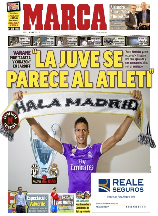 «В Кардиффе у 'Реала' будет шанс завоевать свой 12-й трофей Лиги чемпионов. Дополнительных стимулов у игроков будет предостаточно. Во-первых, еще никому не удавалось защитить титул, а 'Реал' может сделать это и добавить трофей к золотым медалям Ла Лиги. Долгих 59 лет 'королевский клуб' пытался оформить такой дубль, но не смог. Так что войти в историю — хорошая мотивация.