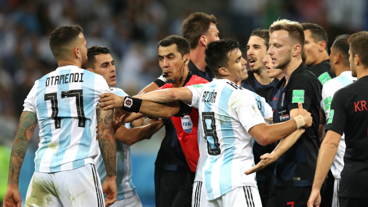 На последних минутах встречи, при счете 2:0 в пользу хорватов Ивана Ракитича сбили на половине поля «альбиселесте», после чего Отаменди подбежал и выбил мяч прямо в лицо лежащему на газоне сопернику.