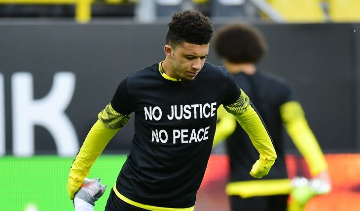 И давайте вспомним, с чего началось движение «преклонить колено» и как оно было интегрировано теперь. Первый известный спортсмен, который сделал это — Колин Каперник, поставил под угрозу свою карьеру, имидж и доходы. Санчо, Уэстон МакКенни и Маркус Тюрам, хоть и не ставили так много на карту, тоже выступили с протестами на прошлой неделе.