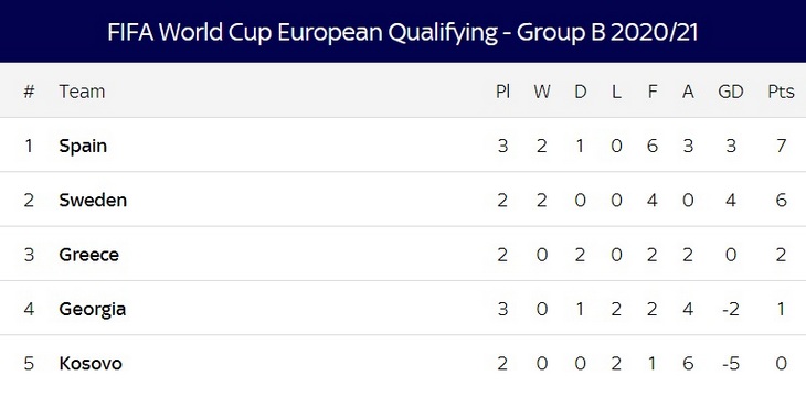 Набрав семь очков в трех турах, «фурия роха» лидирует в группе, опережая команду Швеции, имеющую игру в запасе, на один балл.