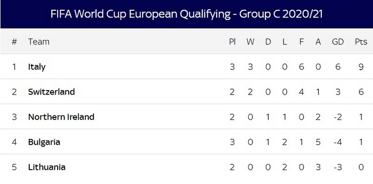 Приятная деталь: Италия набрала девять очков из девяти возможных, одержав три победы с одинаковым счетом 2:0 и не пропустив ни одного гола. Ближайшим преследователем итальянцев остается Швейцария, у которой игра в запасе и на три балла меньше.