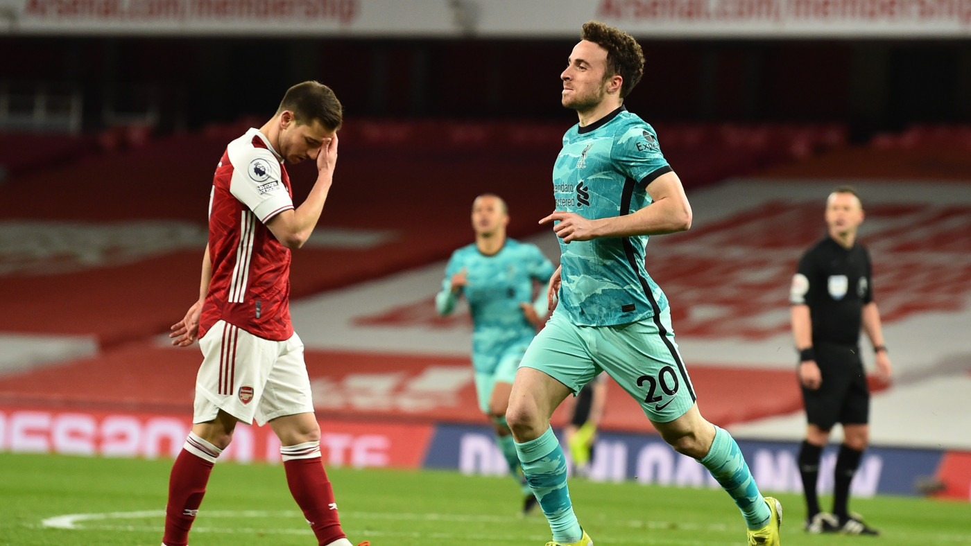 Счет в матче был открыт на 64-й минуте. Трент Александер-Арнольд с правого фланга выполнил подачу к линии вратарской, где Диогу Жота здорово открылся между двух защитников и головой пробил под перекладину — мяч от рук Лено залетел в сетку ворот «Арсенала».
