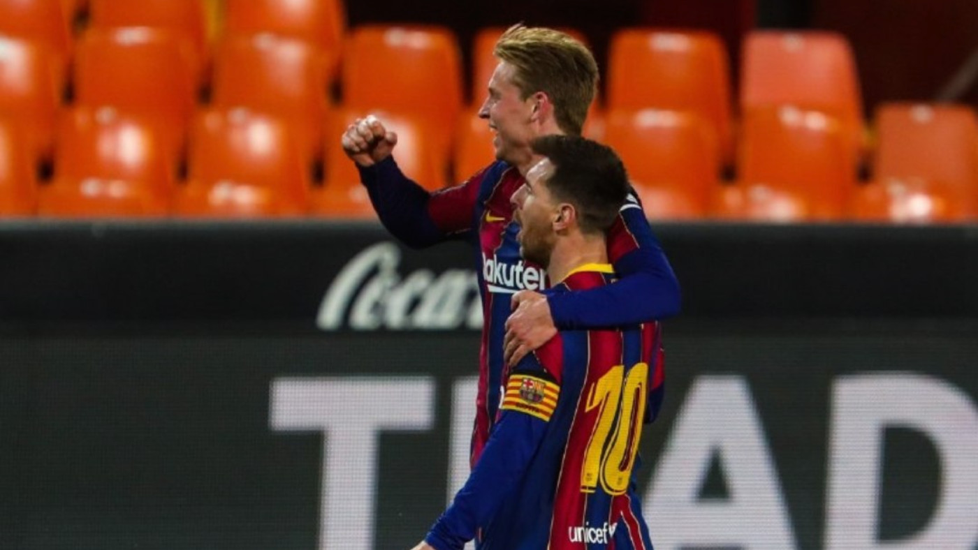 В матче 34-го тура чемпионата Испании «Валенсия» потерпела домашнее поражение от «Барселоны» со счетом 2:3.