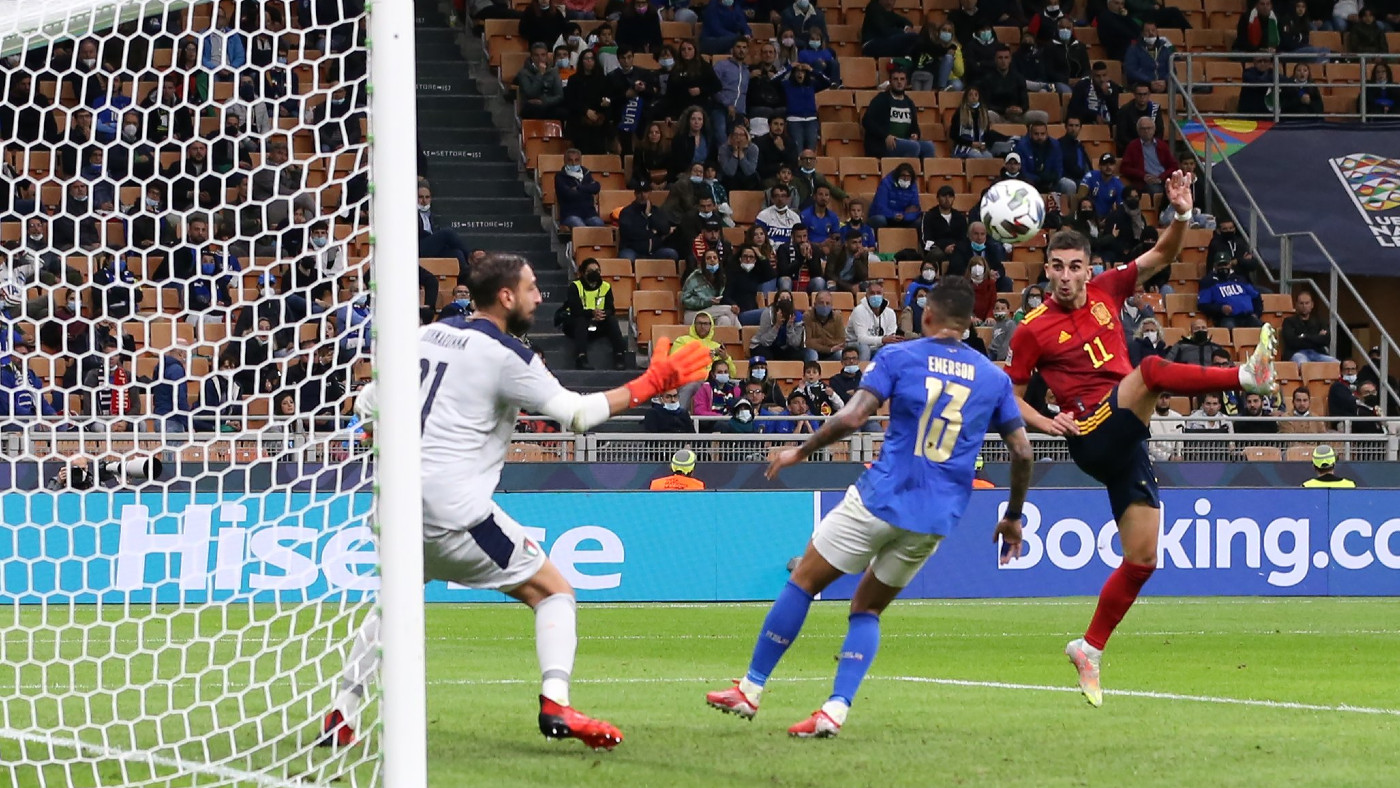 Сборная Италии потерпела домашнее поражение от команды Испании (1:2) в матче 1/2 финала Лиги наций.
