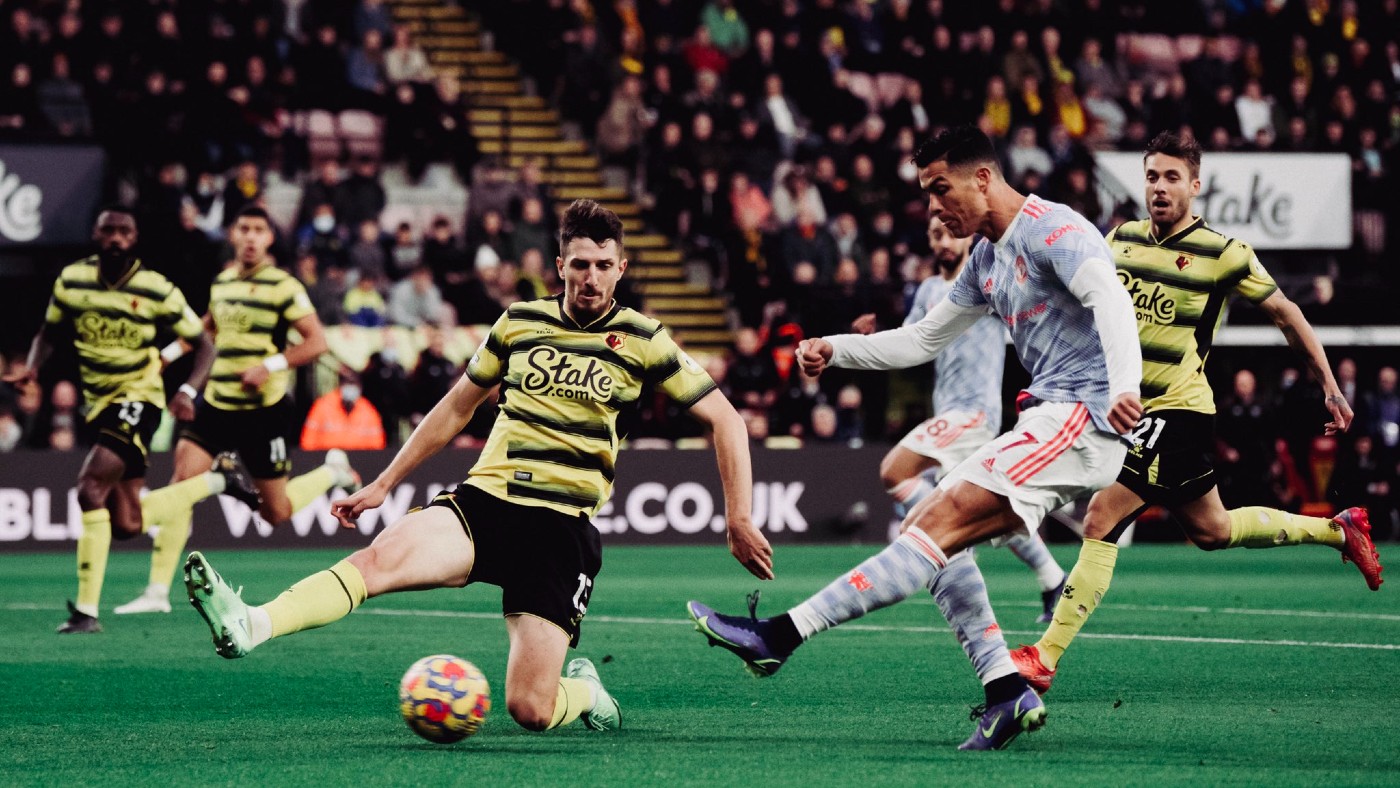 На 50-й манкунианцы отквитали один мяч. Ван де Бек головой перевёл мяч в ворота «Уотфорда» после аккуратной скидки Роналду от дальней штанги.