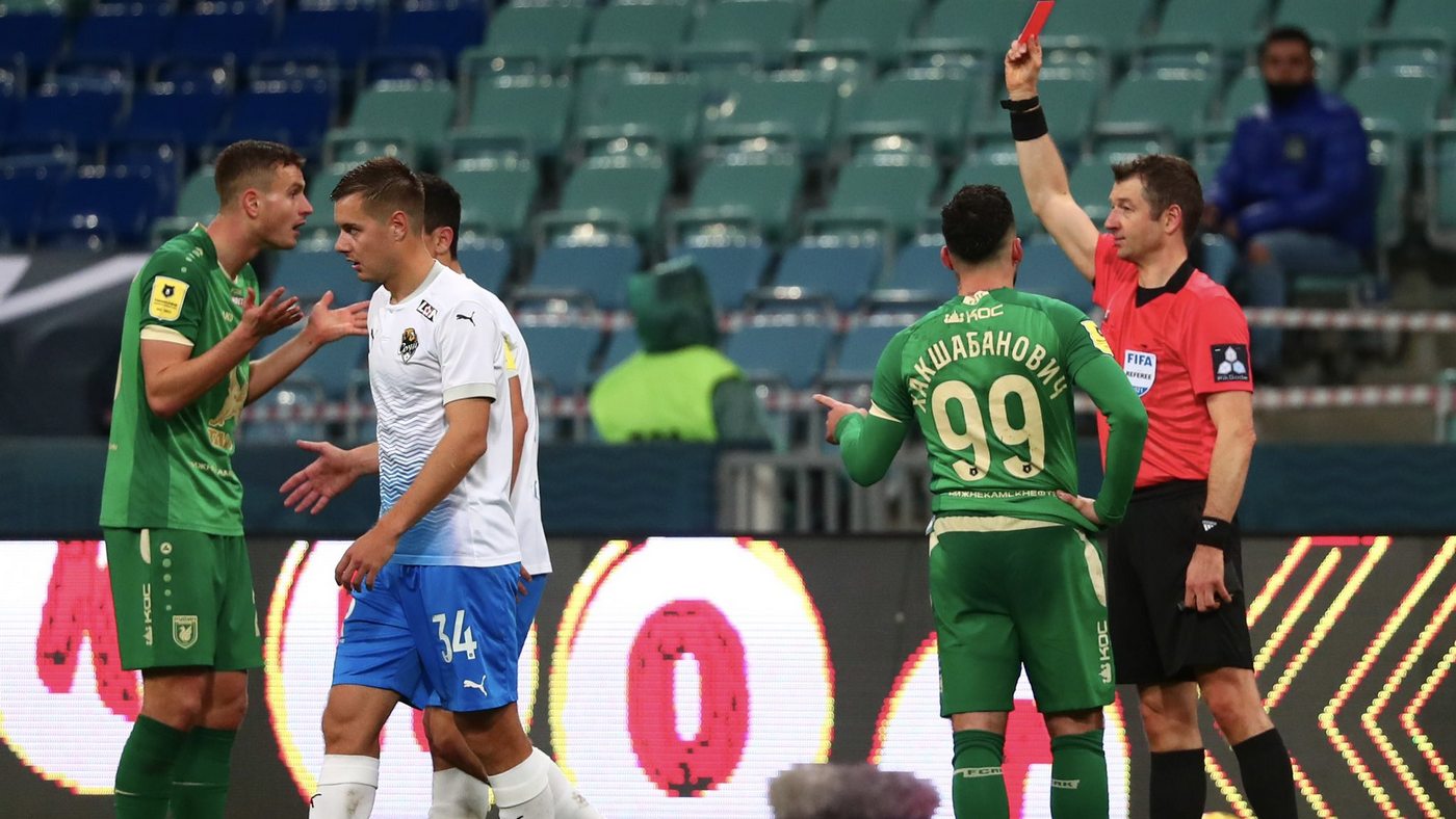 После перерыва команды обменялись удалениями. На 59-й минуте Игорь Юрганов получил красную карточку за фол последней надежды. Еще через пару минут Оливер Абильгор увидел перед собой вторую желтую карточку.