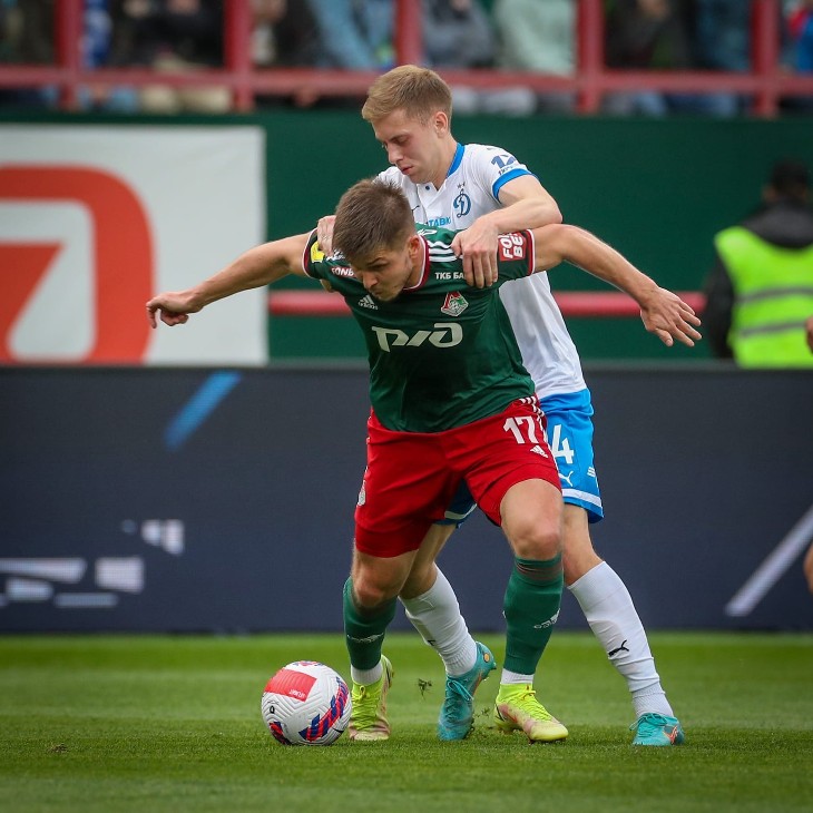 13’ «Локомотив» отвечает резким забросом из глубины на Керка — голландец обработал мяч первым касанием, а вторым послал его над перекладиной ворот «Динамо».