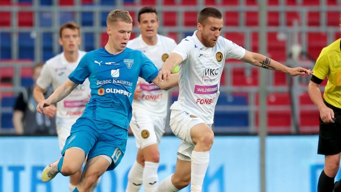 На 65-й минуте последовал навес гостей с левого фланга, и Данил Ежков вторым этажом переправил мяч в правый угол.