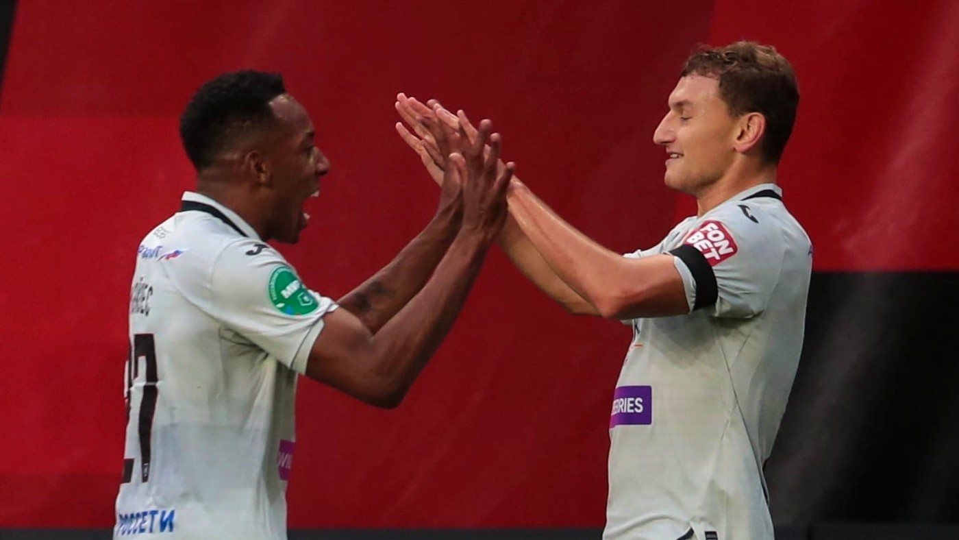 На 88-й минуте хозяева отыграли один мяч. Гулиев изящно набросил мяч на зависшего в воздухе Магомедова — и Бутта по идеальной траектории головой закинул игровой снаряд точно в девятку.