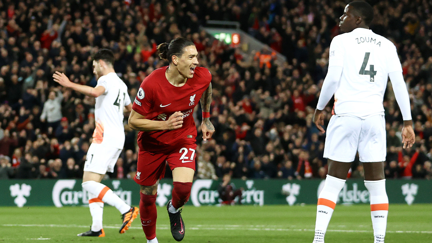 Счет в матче был открыт на 22-й минуте. Цимикас подключился по левому флангу и вырезал кросс в штрафную «молотобойцев», Дарвин Нуньес набежал и головой переправил мяч в дальний угол.