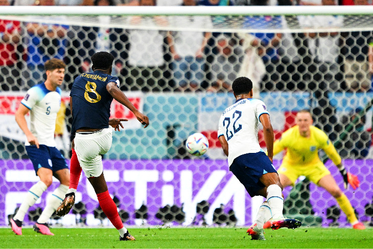 Голов, забитых с игры в этот игровой день было всего три и все по своему очень хороши, и гол Юссефа Эн-Несири португальцам, и гол Оливье Жиру англичанам. Но выделить хочется мяч, забитый Орельеном Тчуамени в середине первого тайма матча с Англией.