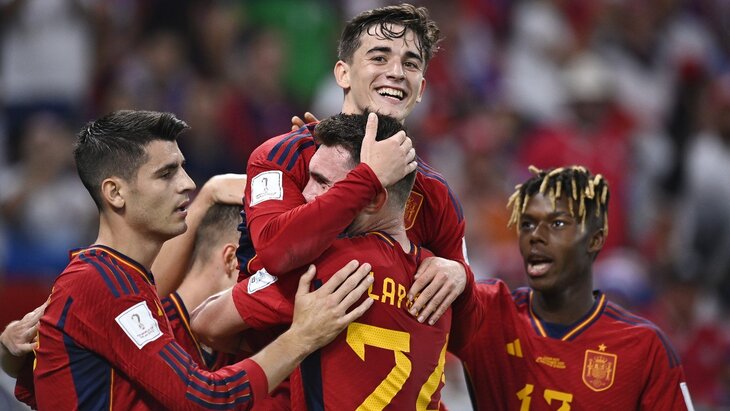 Испания: Унаи Симон, Х. Навас, Ле Норман, Ляпорт, Альба, Родри, Мерино, Родриго, Гави, Пино, Мората.