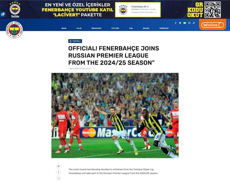 «Фенербахче» будет выступать в РПЛ