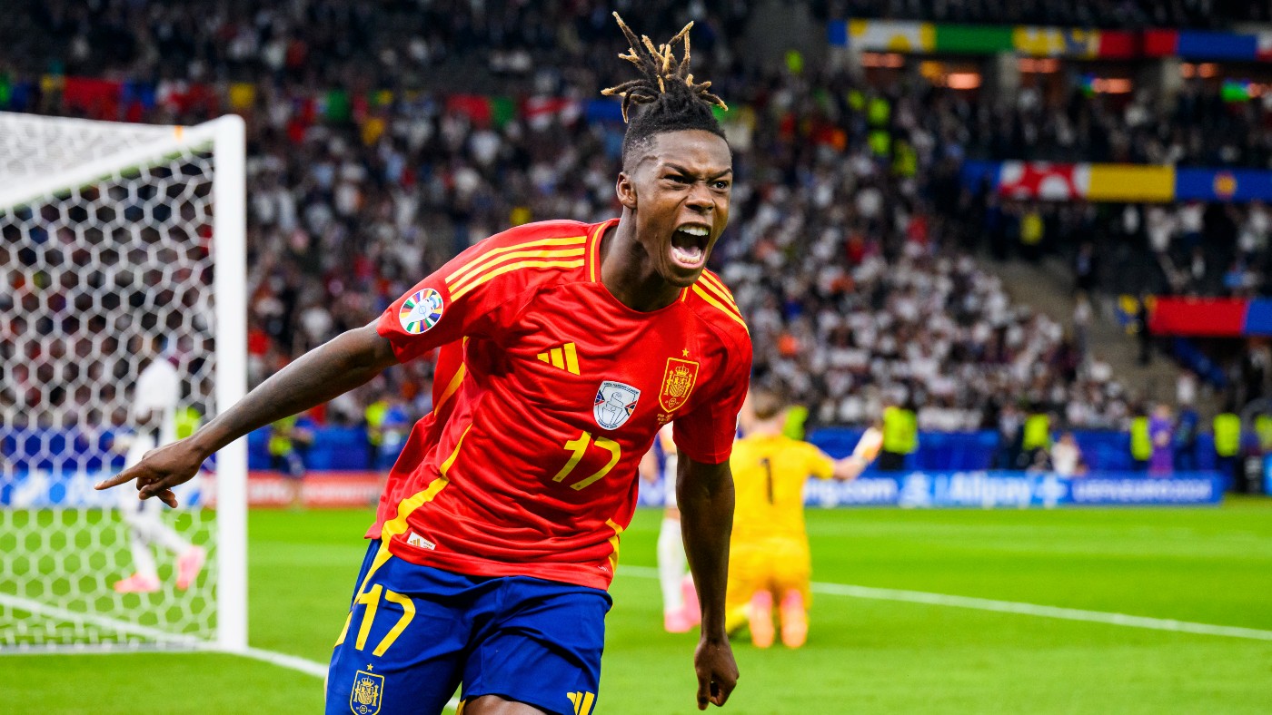 Испания: Райа, Карвахаль, Ле Норман, Лапорт, Кукурелья, Субименди, Фабиан Руис, Ольмо, Ямаль, Уильямс, Перес