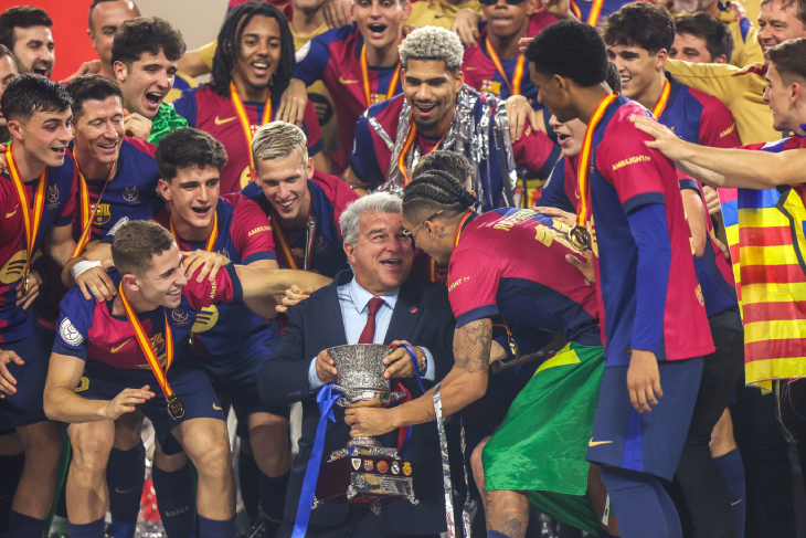 У Лапорты в руках Суперкубок, чувство триумфа ощутимо, лица его игроков купаются в этом экстазе пост-наслаждения. Битва выиграна, и война, возможно, поворачивается в их сторону — все выглядит правильно в их мире. Но, как и всегда с Лапортой, пожалуйста, не судите книгу по обложке.