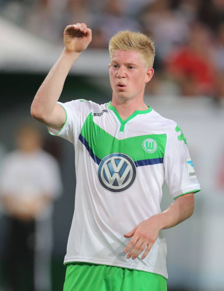 Де Брёйне успел начать новый сезон в составе «Вольфсбурга» и даже выиграть Суперкубок Германии у «Баварии», когда «Манчестер Сити» предложил за игрока 75 миллионов евро. На тот момент это был самый дорогой трансфер в истории «горожан» и вторая по дороговизне покупка в истории английского футбола — лишь «Манчестер Юнайтед» заплатил больше за Анхеля Ди Марию. Первый сезон в стане «горожан» Де Брёйне провел под руководством Мануэля Пеллегрини. Тогда он еще не был полноценным лидером команды — Серхио Агуэро и Давид Сильва были более значимыми футболистами, но несмотря на это, был признан игроком сезона в «Сити».