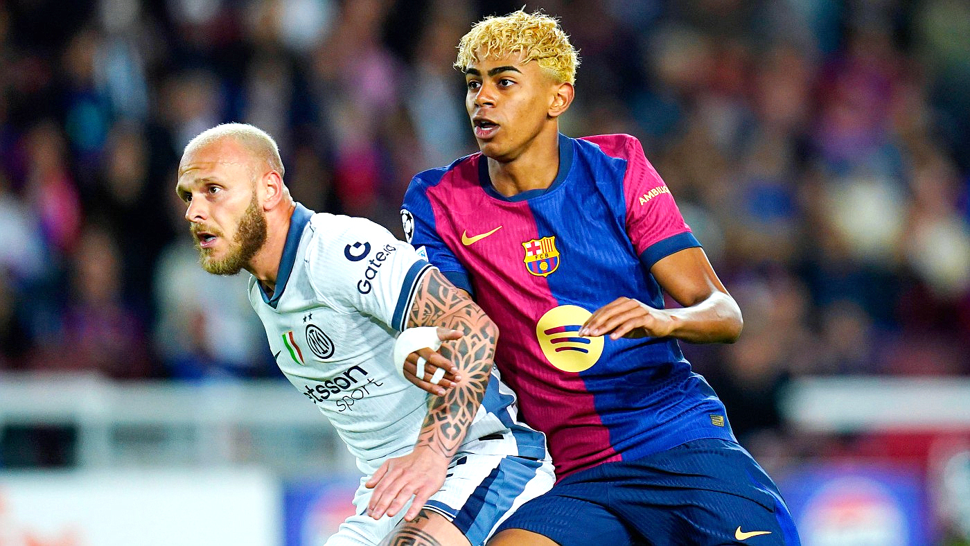 5' Ямаль ушел от двух защитников, но затем получил по ногам от Димарко. Штрафной в пользу Барселоны.