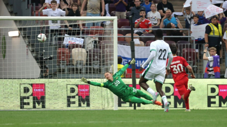 Карпин чуть успокоился, но напряжение не спадало. На 40-й минуте россияне едва не поплатились за расслабленность: Деле-Баширу убежал от Мелёхина, абсолютно один вышел на Сафонова — и тут Матвей взял по-настоящему мёртвый мяч. Прыжок в угол, блестящая реакция, молниеносно выставленная рука. Казалось, всё под контролем.