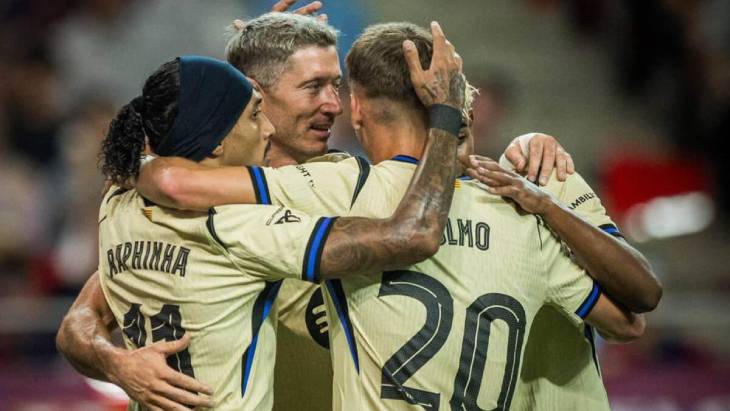 Каталонцы начали матч в оптимальном составе: с Левандовским на острие, Ямалем и Рафиньей по краям, и с привычной связкой в полузащите. Хватило всего восьми минут, чтобы выйти вперёд. Ламин Ямаль пробил в штангу, а Роберт Левандовский, как всегда оказавшийся в нужной точке, без проблем добил мяч в пустые ворота. Это был его первый гол в этом предсезонном турне.