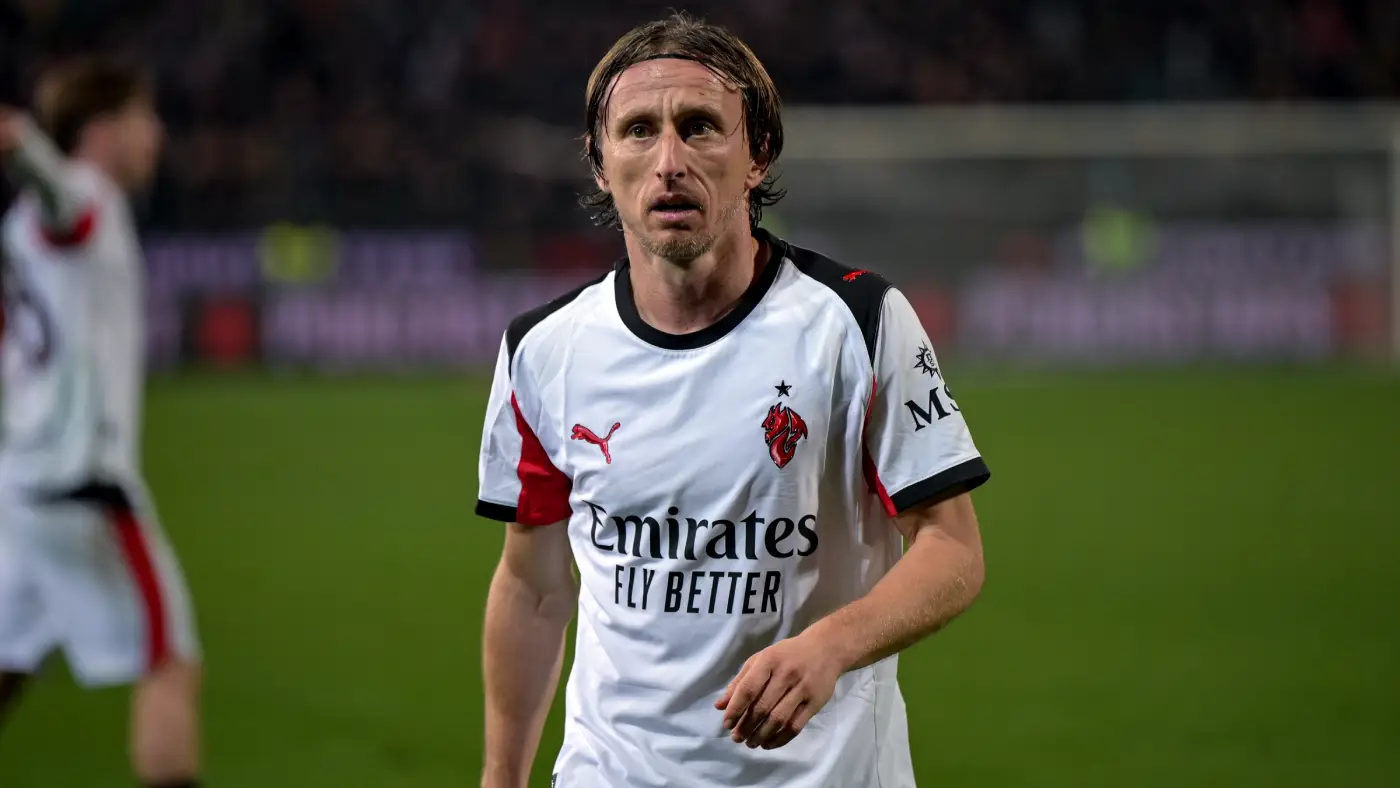 42' Лука Модрич («Милан») активно разыгрывает мяч в центре поля, но пока без обострения впереди.