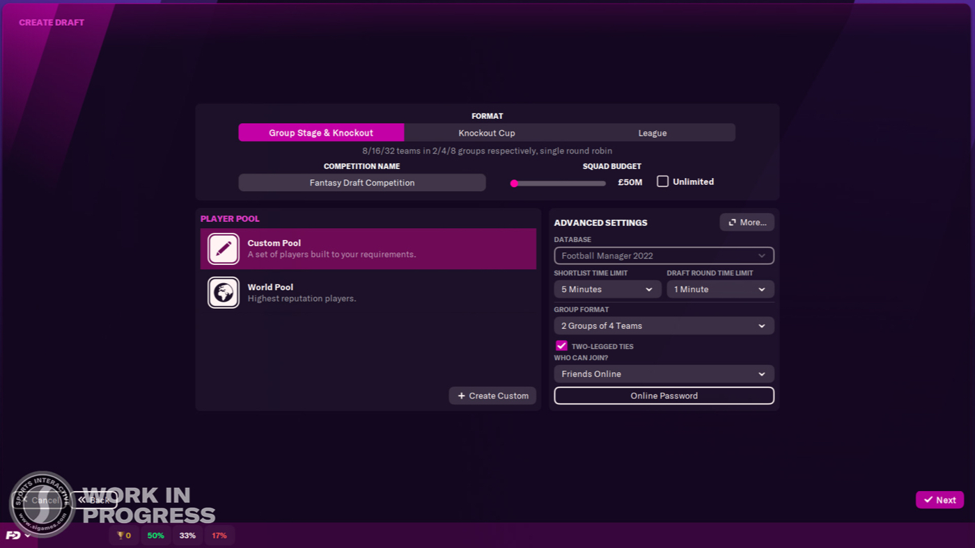 Разумеется, функцией Fantasy Draft никого не удивить, однако грядущая часть FM внесла в представленный режим определенные дополнения. Одно из главнейших нововведений — добавление формата «Групповой раунд и плей-офф».