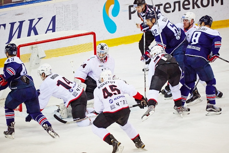 На дубль Николая Прохоркина (3, 24) и шайбу Максима Майорова (15) гости ответили точными бросками Александра Комаристого (14), Павла Макаренко (25), Кирилла Семенова (46) и Федора Полищука (53).