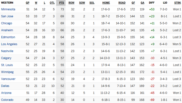 Турнирная таблица Западной конференции