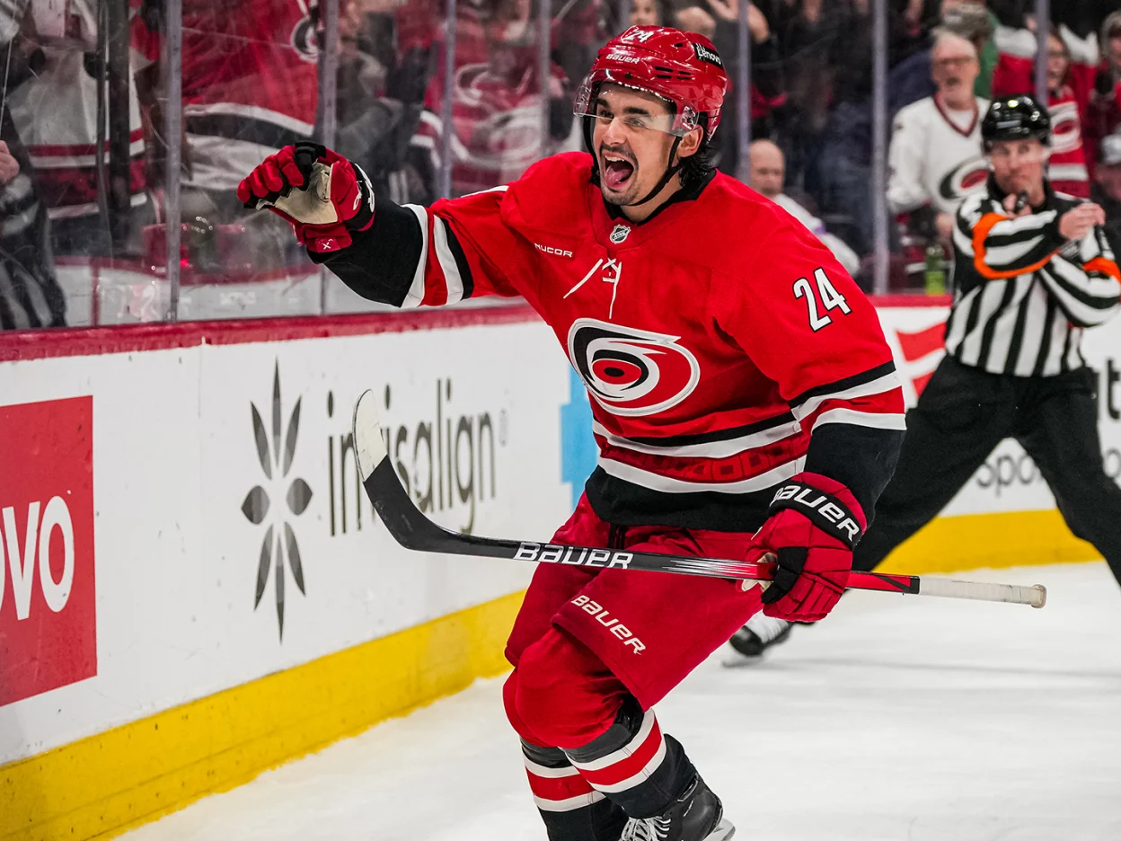 Правый нападающий «Каролины» выдал второй подряд сезон с 30+ шайбами, став лучшим снайпером команды с 32 голами — после 33-х в сезоне 2023/24.