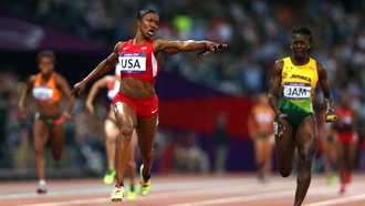 Американские бегуньи Тианна Мэдисон, Бьянка Найт, Элисон Феликс и Кармелита Джетер выиграли эстафету 4x100 метров с мировым рекордом — 40.82 секунды.