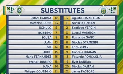 Замена у Аргентины. Перес вышел вместо Перейры. Бразилия пока без замен.