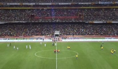 Гимны стран звучат на "Национальном стадионе", который, кстати, вмещает 91000 зрителей.