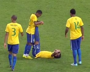 Еще и замена у бразильцев. Робиньо вместо Неймара. Не забил сегодня Неймар, а вот по ногам получил хорошенько.