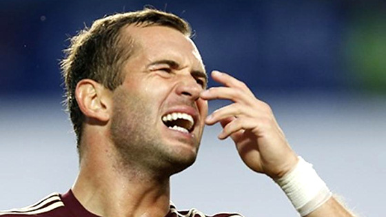 Теперь от Кержакова досталось Юлиану Ерхану. Как-то грубовато играют россияне на первых минутах.