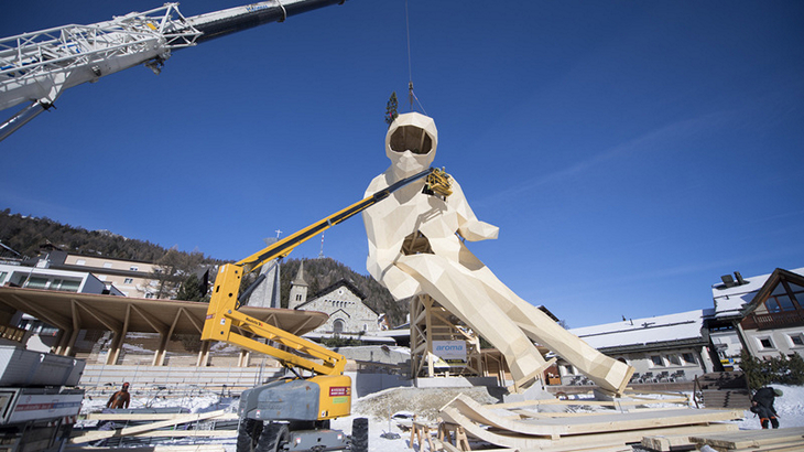 Одной из изюминок мирового первенства станет талисман соревнований – деревянный лыжник Эди, воссозданный прямо в центре Санкт-Морица.
