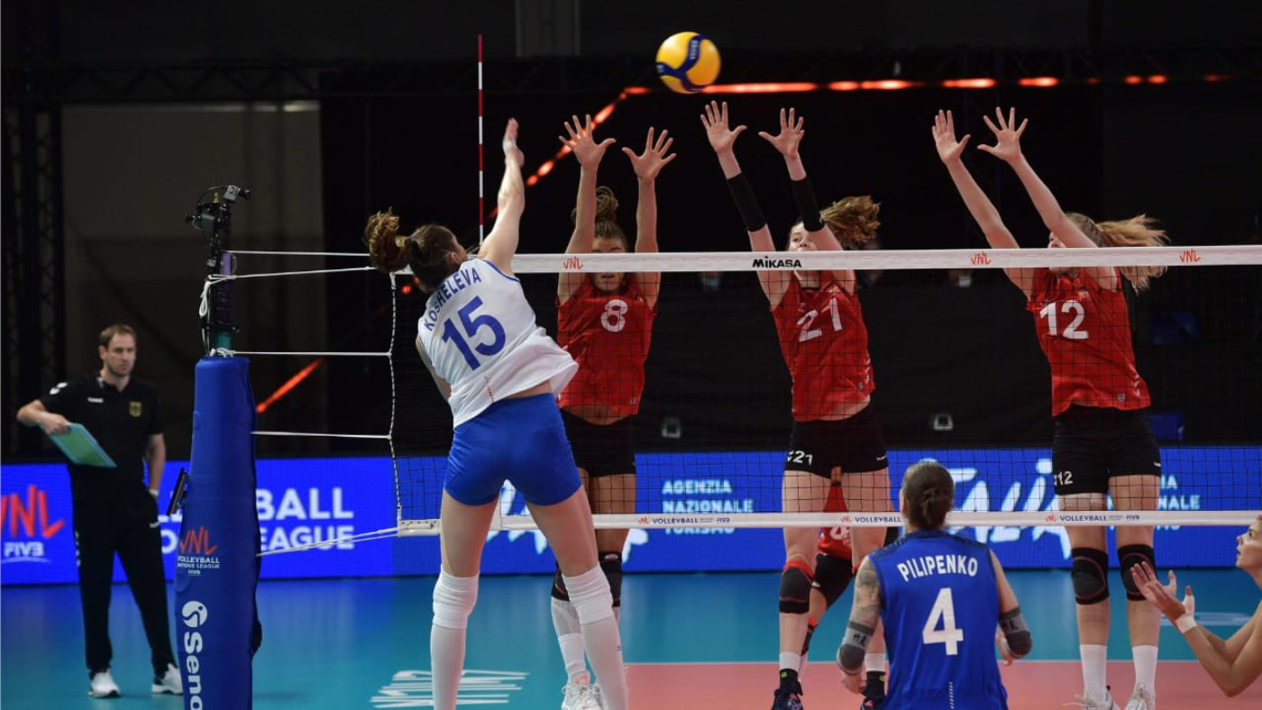Женская сборная России в стартовом матче предварительного раунда волейбольной Лиги наций обыграла команду Германии со счетом 3-0 (25:21, 25:22, 25:19).