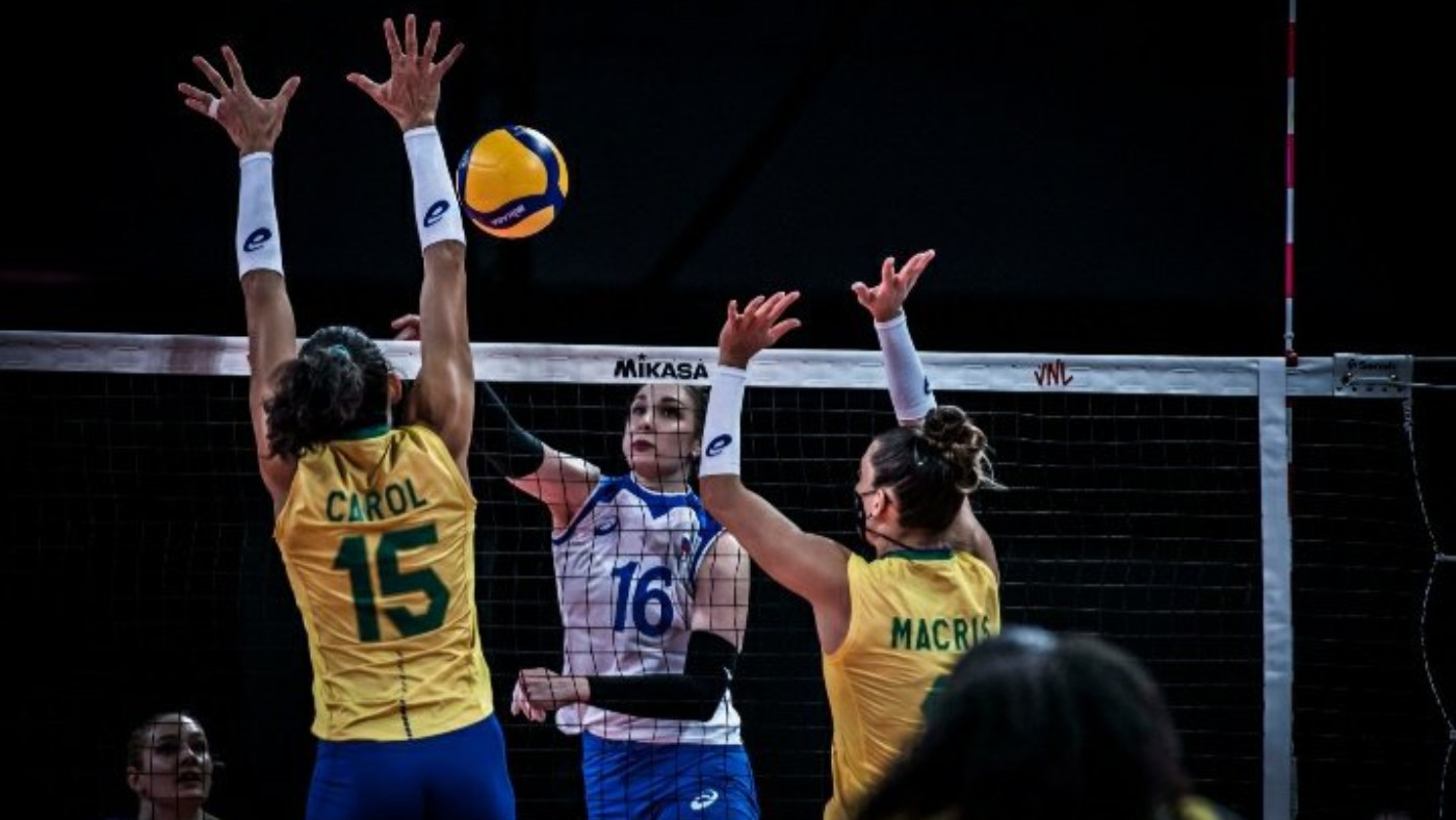 Женская сборная России в матче 5-го тура предварительного раунда волейбольной Лиги наций уступила команде Бразилии со счетом 0:3 (20:25, 11:25, 18:25)