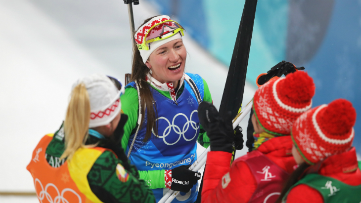Главной героиней дня стала Дарья Домрачева, которая в составе женской сборной Белоруссии по биатлону одержала победу в эстафетной гонке.
