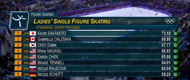 07:03Лидирует пока Каори Сакамото из Японии с оценкой 73.18