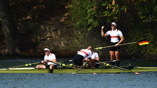 Немецкие гребцы Филипп Венде, Лауриц Шоф, Карл Шульце и Ханс Грюне завоевали золото Олимпийских игр в Рио-де-Жанейро в соревнованиях четверок парных.