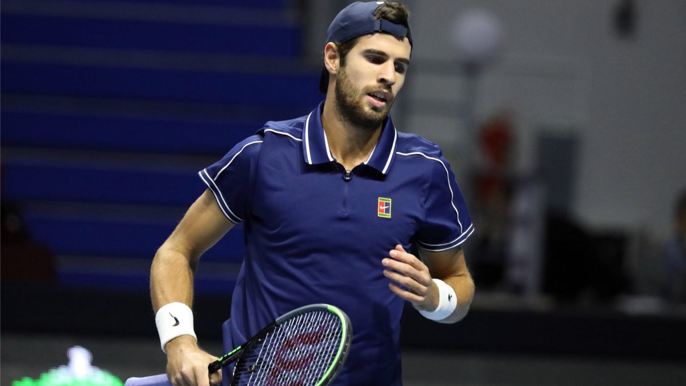 Их встреча продолжалась 2 часа 9 минут. Хачанов сделал 11 эйсов, совершил три двойные ошибки, выиграл три из четырех брейк-поинтов.