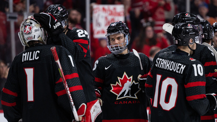 После оплеухи в первом раунде парни Дэнниса Уильямса откатали идеальные три тура. Во втором матче мегамотивированные подрастающие звезды обезглавили сборную Германии (11:2). Привет немцам передал Коннор Бедард с 4 ассистами и хет-триком. Еще одну трешку вонзил Дилан Гюнтер.